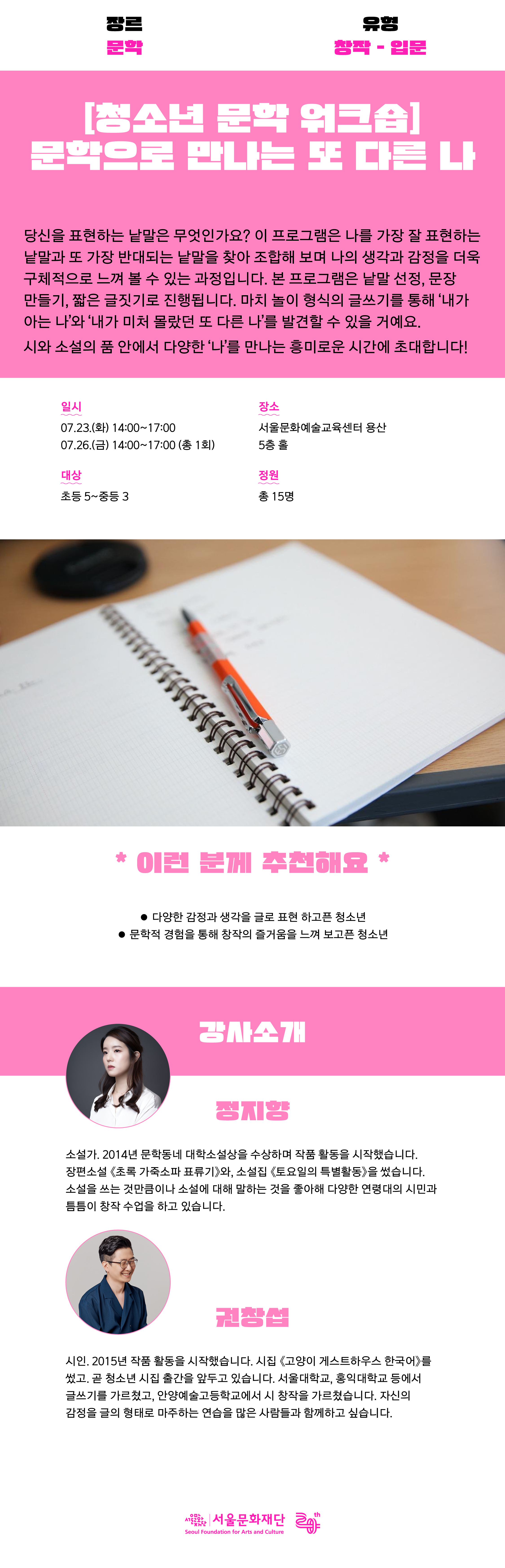 -프로그램 진행에 필요한 개인 정보는 서울문화재단 회원 가입 시 제공한 개인정보를 활용합니다.